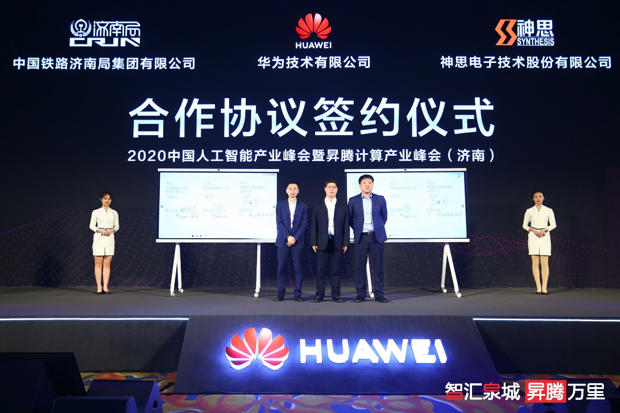 峰會現(xiàn)場,中鐵濟南局集團、華為、神思電子三方共同簽署合作協(xié)議,針對鐵路行業(yè)數(shù)字化、信息化、智能化等方面展開深度合作,共同推動智能視頻監(jiān)控系統(tǒng)在中鐵濟南局集團全面應(yīng)用,打造創(chuàng)新的綜合智能與信息系統(tǒng),為鐵路安全運行保駕護航。
