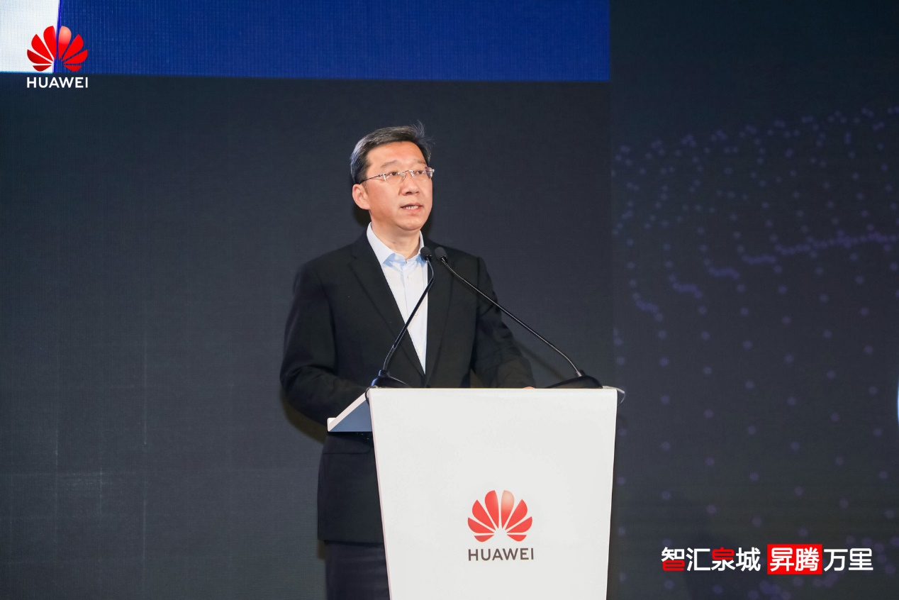 濟南市副市長孫斌,中國信息通信研究院副院長何桂立,華為副總裁、中國區(qū)云與計算總裁史耀宏為峰會致辭。