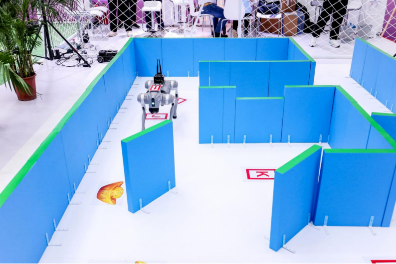 展會現(xiàn)場,設(shè)置“智能體智闖旋關(guān)”與“智能體智探幻陣”游戲,讓觀眾體驗“具身智能、空間智能、自主決策”及“空地協(xié)同多智能體聯(lián)動”全自主無人系統(tǒng)的強大能力。在“智能體智闖旋關(guān)”游戲環(huán)節(jié),4位持有民航局頒發(fā)的小型多旋翼無人機超視距駕駛員證書的專業(yè)選手與“神思智飛”展開精彩對決。最終“神思智飛”順利完成比賽,專業(yè)選手均未能完成挑戰(zhàn)任務,在這場人工操控與AI技術(shù)的對弈中,“神思智飛”大獲全勝。